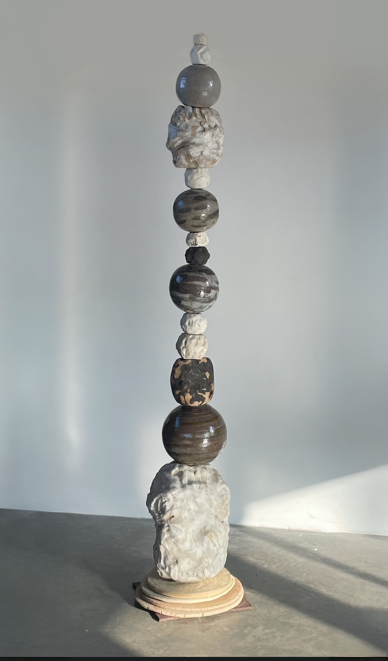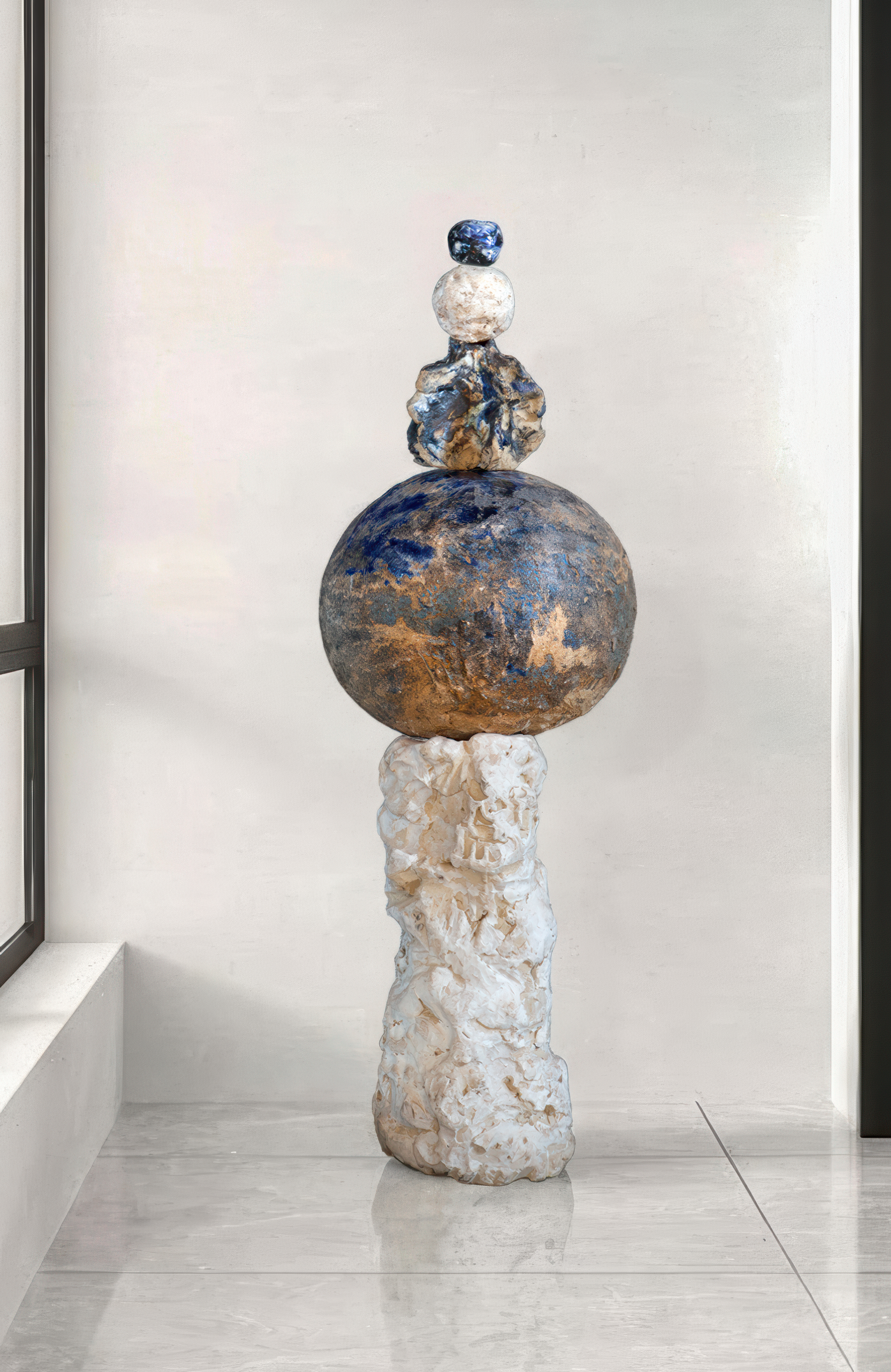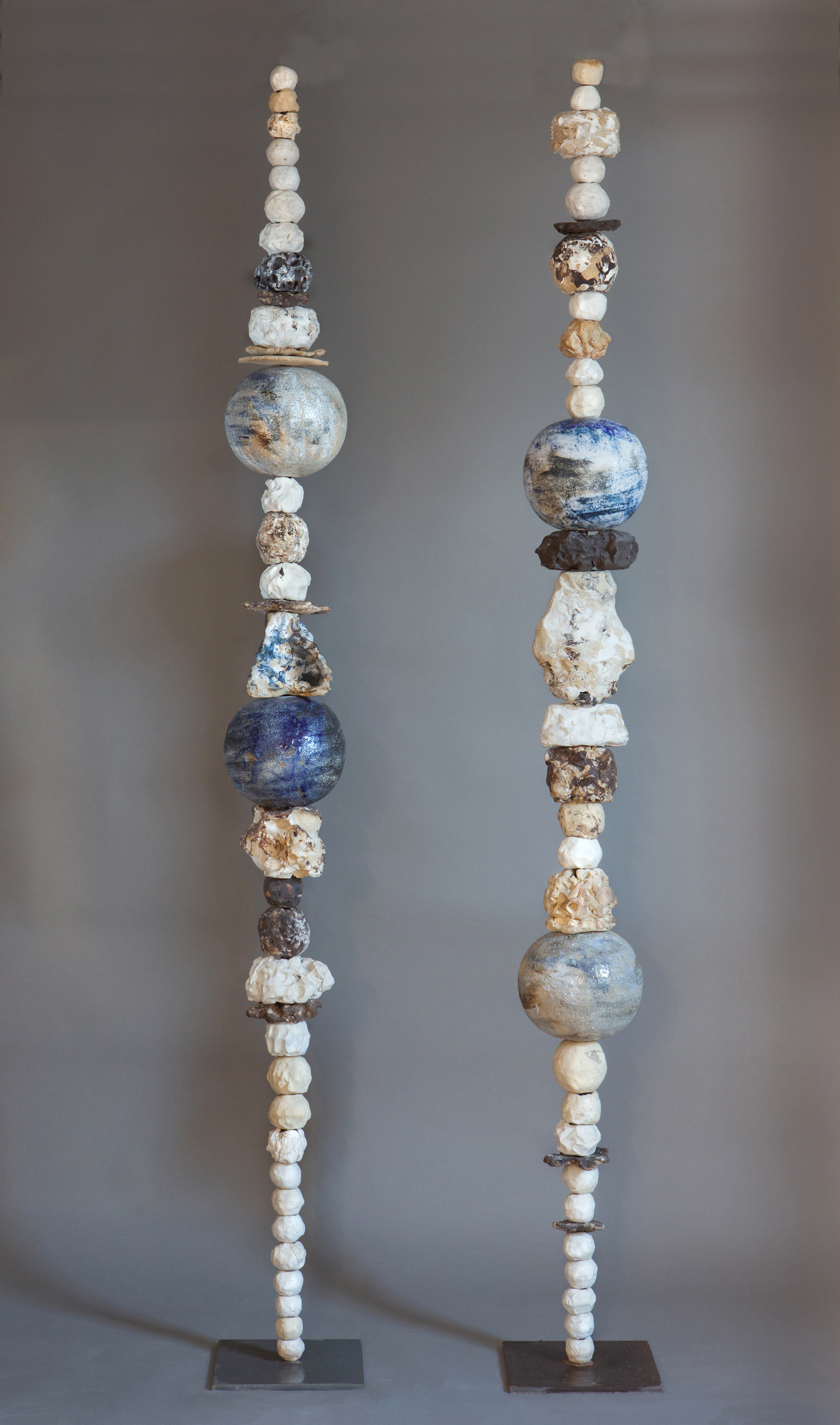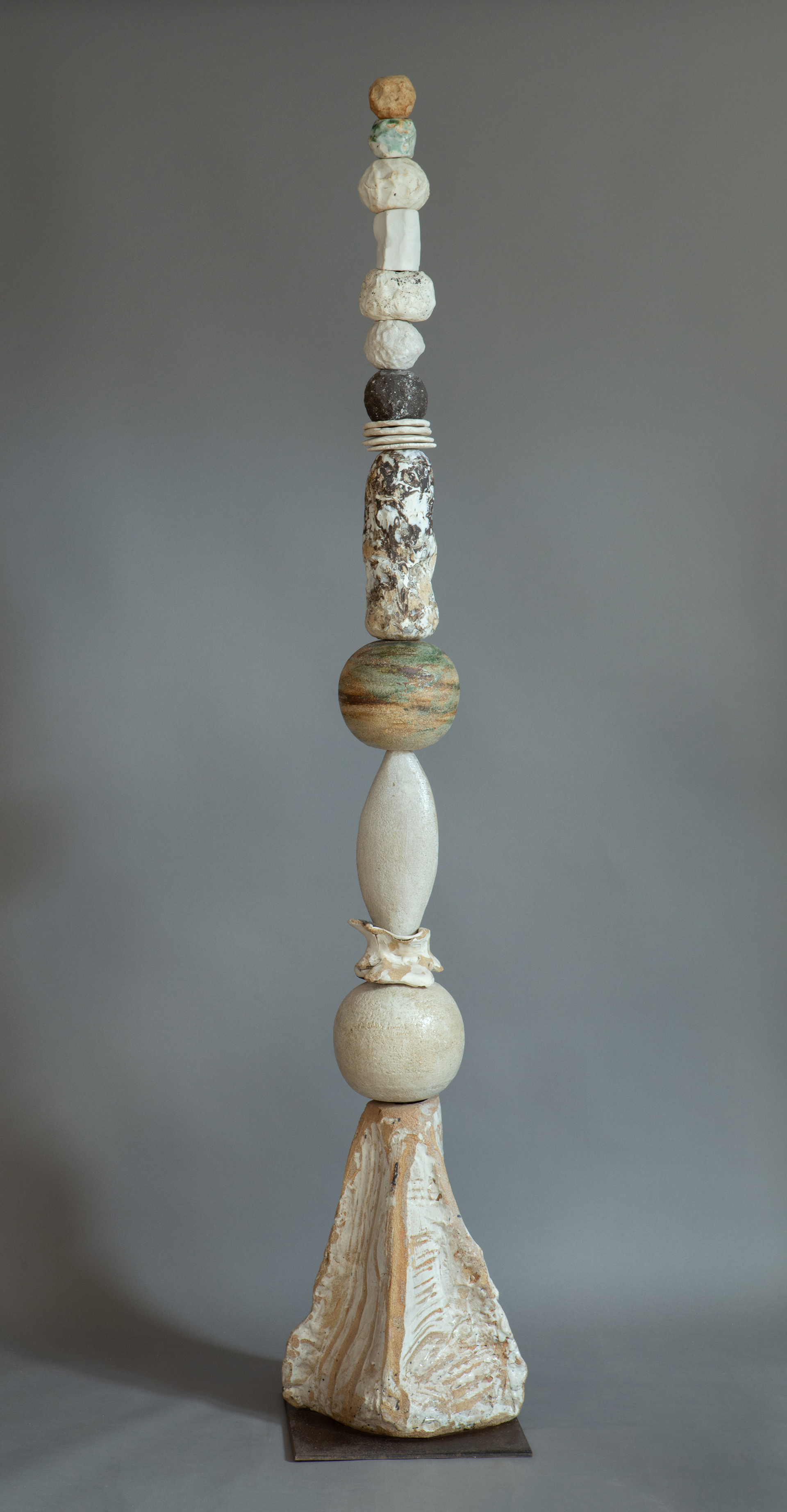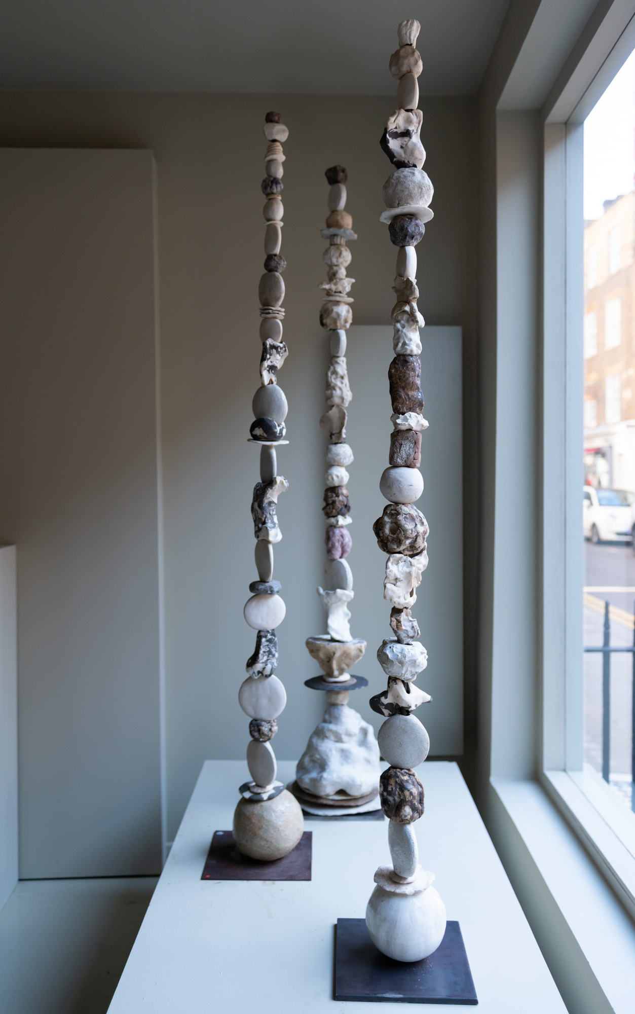 The Totems are a series of tall standing forms, in which shapes are carved, moulded, shaped and composed to create a feeling of almost human presence - and what it is to touch, feel and bear witness. They are often composed together, in groups of one or two or in relation. Placed in interiors, exteriors as single sculptures or in couples or groups, these sculptures amplify and call out to our relationship with nature and the outside world. As such these are meditations on the immensity and mystery of the world we live in and our role as guardians to witness it.